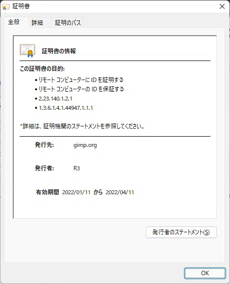 変なところに飛んだらいやなので、URLをしっかり確認SSLもちゃんとそのドメイン名で証明書が発行されているか確認します。