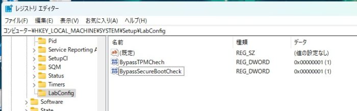 パス: HKEY_LOCAL_MACHINE\SYSTEM\Setup\LabConfig