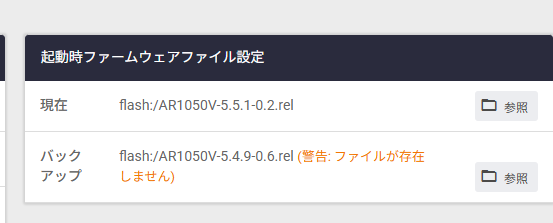 バックアップも一つ前のファームウェアを設定しておきます。