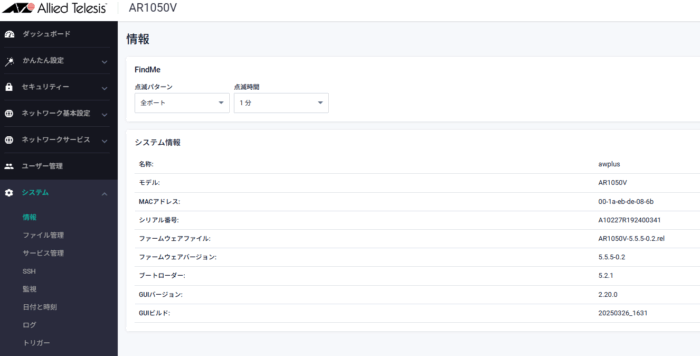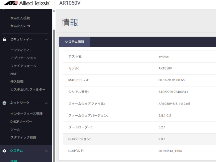 現在のファームウェア確認