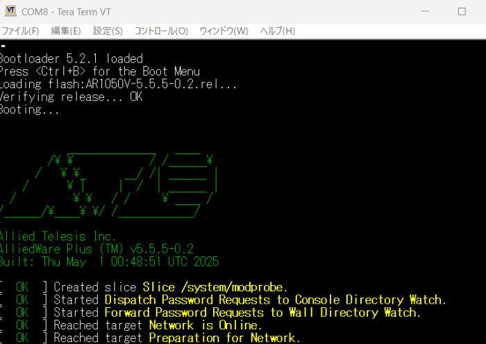 コンソールもつないでおいたので、5.5.5-0.2.rel で起動してるのが分かる