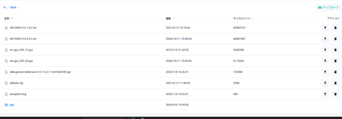 sho flash: コマンド中身を調べると、arc-gui_549_12.gui が入っているのでweb管理画面にアクセスできる事が分かる
