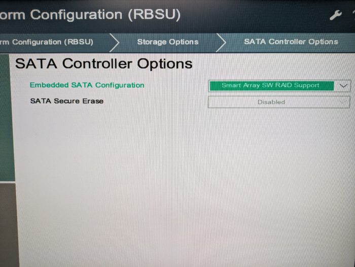 Smart Array SW RAID Support → SATA AHCI Support へ変更