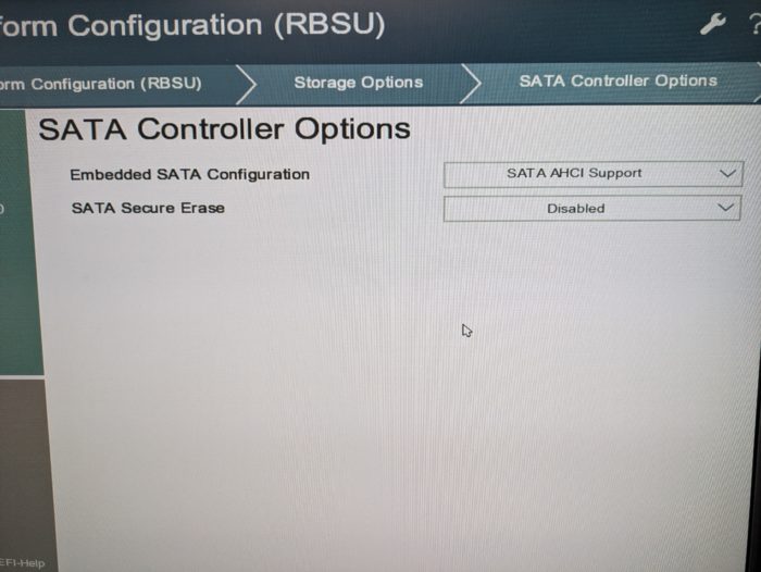 - Storage Options > SATA Controller Options へ進みます。